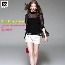 여름 시스루 블라우스 여름 울트라 얇은 섹시한 투명 메쉬 쉬폰